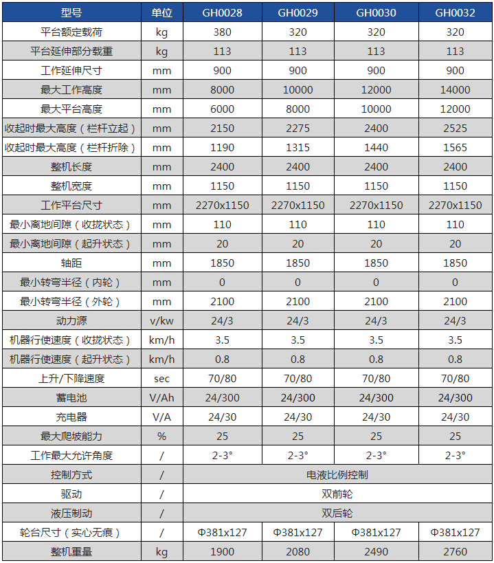 全电动自行走剪叉式高空作业平台额定载重:320/380kg最高高度:8000-14000mm安全检修支撑杆,检修时候保护维护人员安全检查;自动坑洼保护系统及倾斜保护体统提供了最